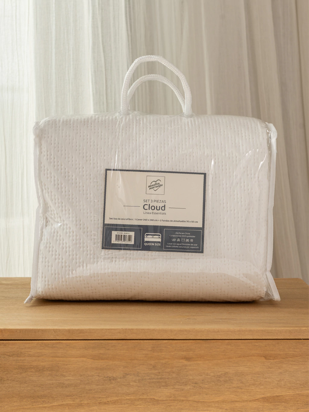 Set de cubrecama con fundas. Renová tu descanso con nuestro cover Cloud confeccionado en microfibra soft. Su diseño de secado rápido, liviano y resistente lo convierte en el complemento ideal para la practicidad del día a día.